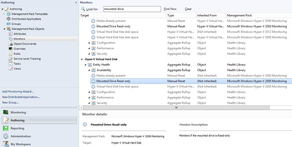1. Go to the SCOM Console, Authoring - Management Pack Objects - Monitors - find - mounted drive